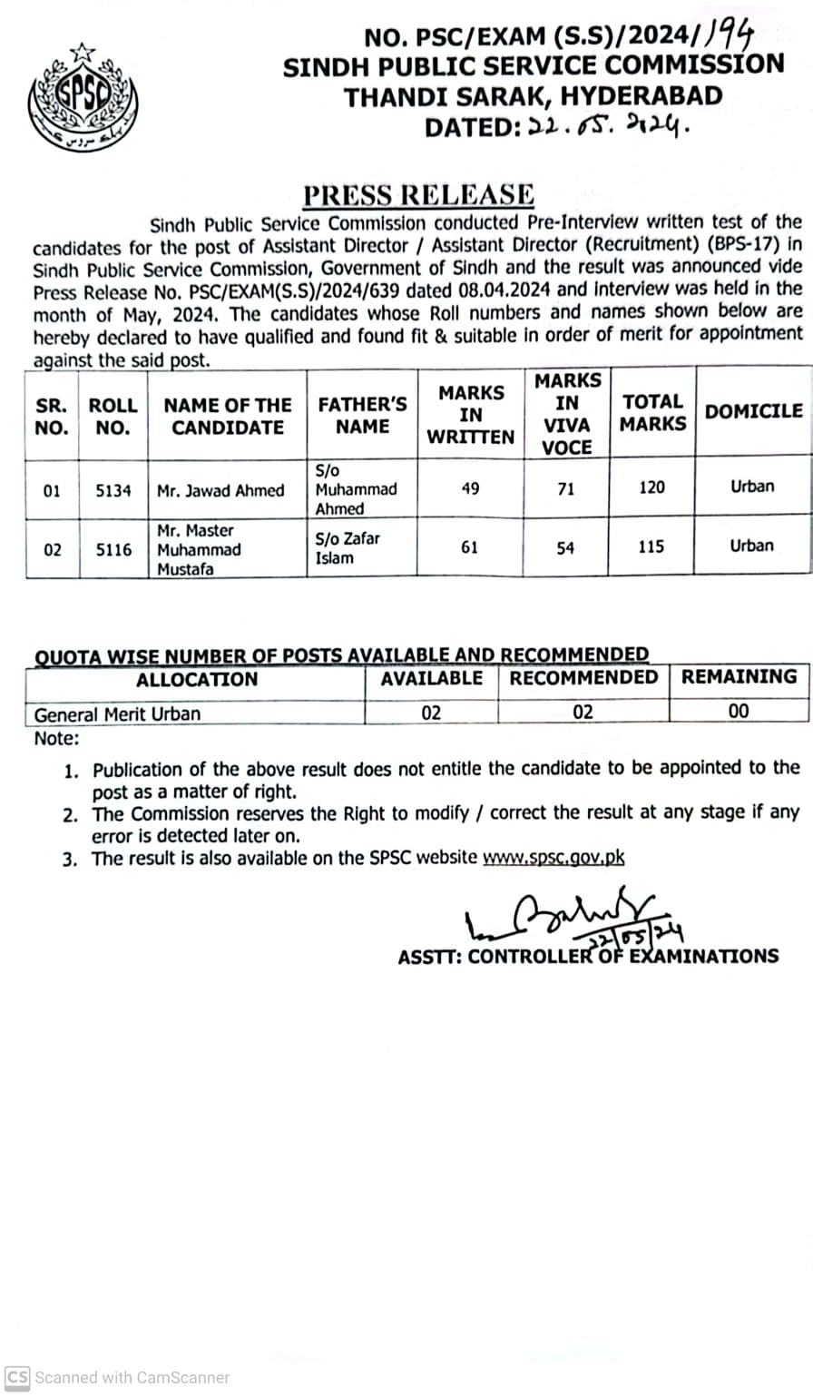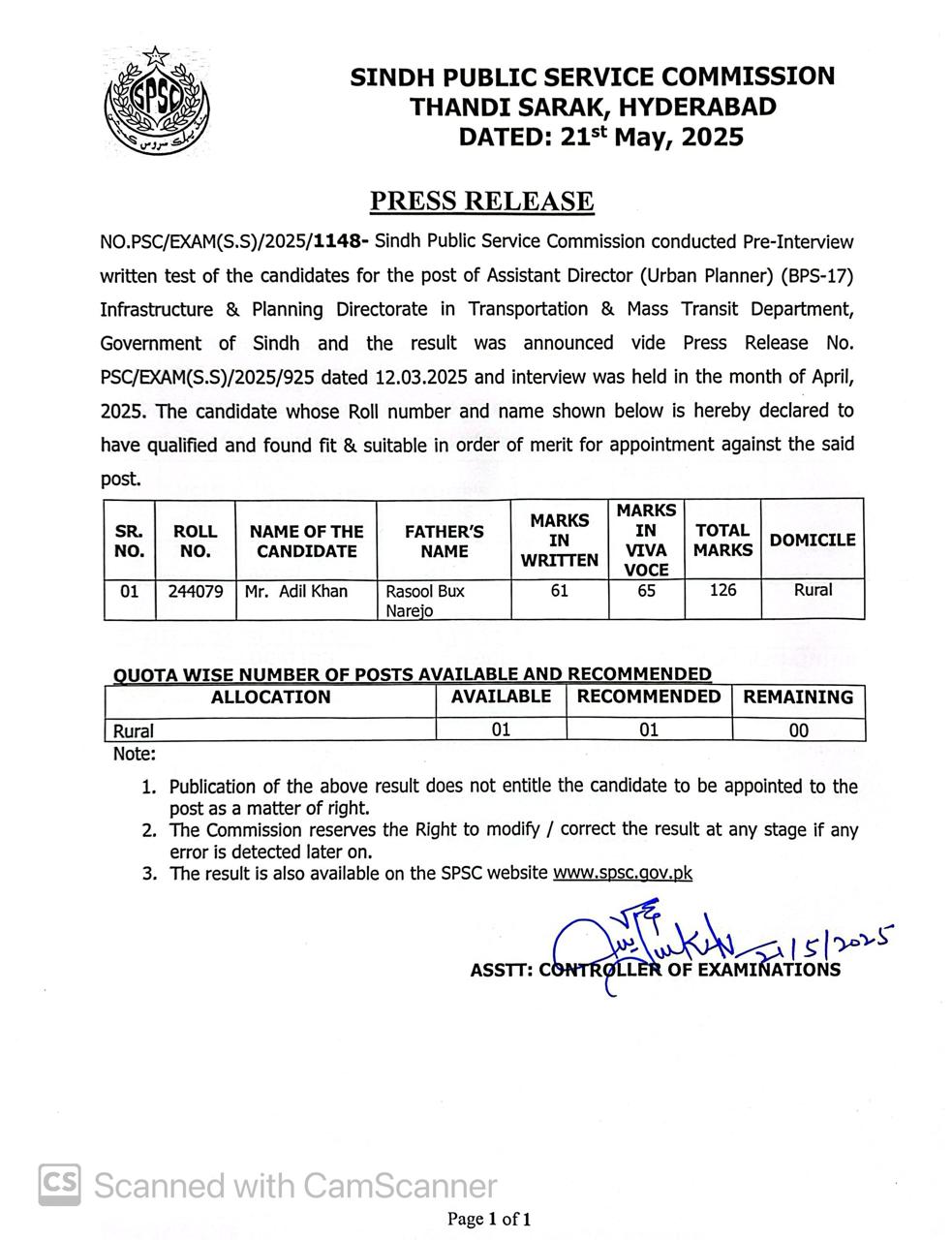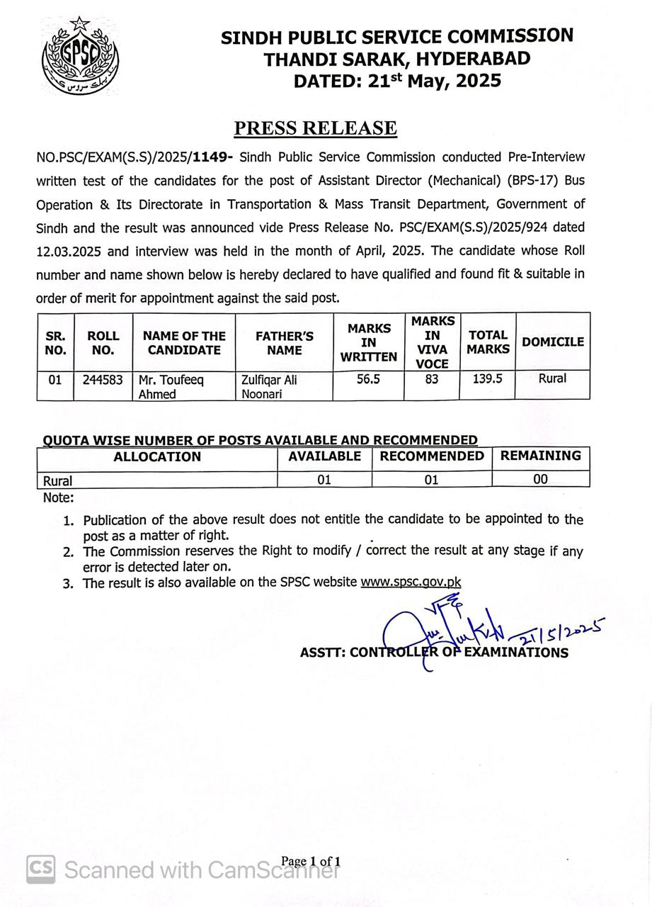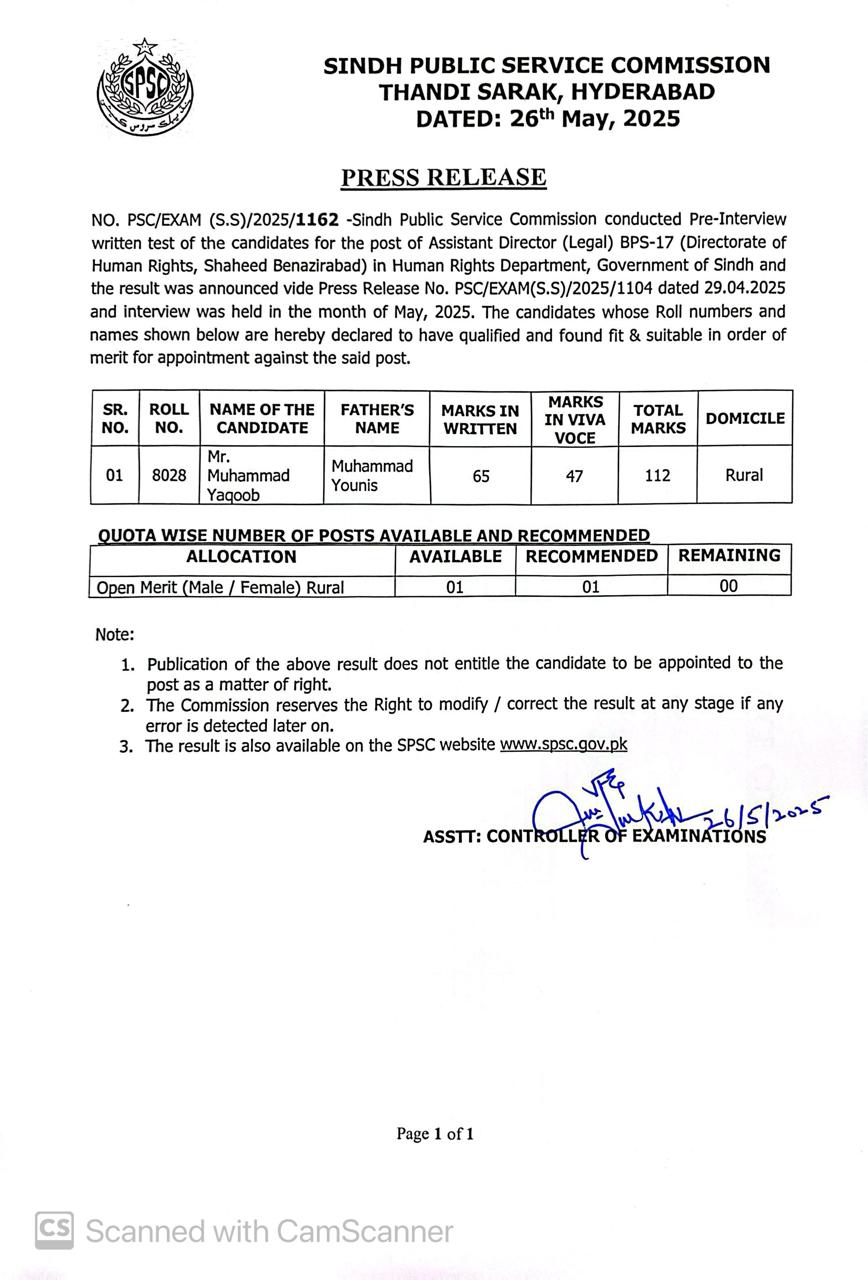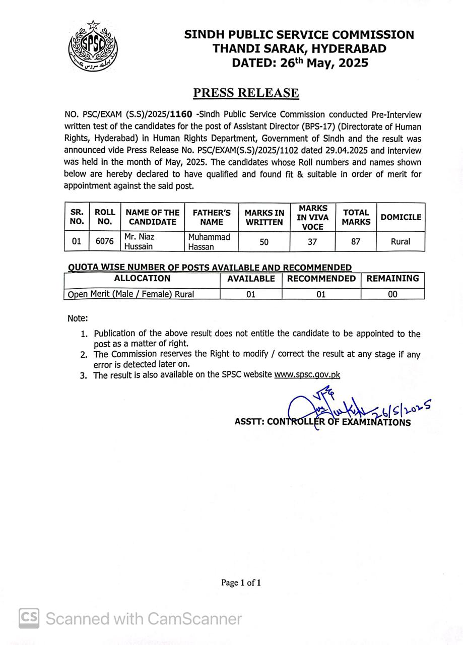 - Lecturer Chemistry (BPS-17) in College Education Department. (Click for Result)