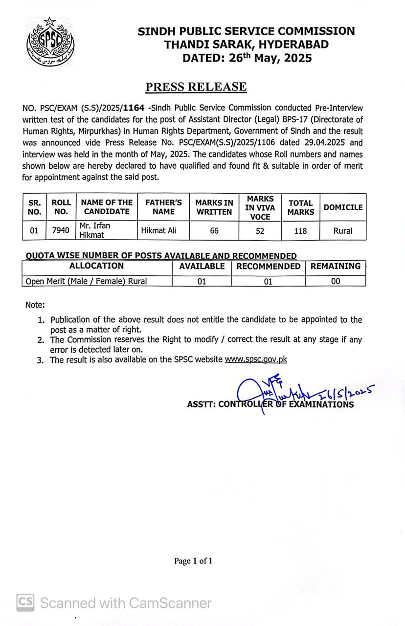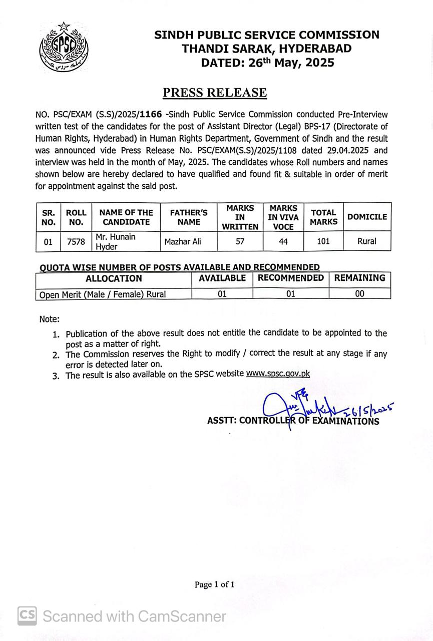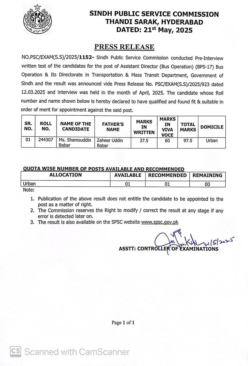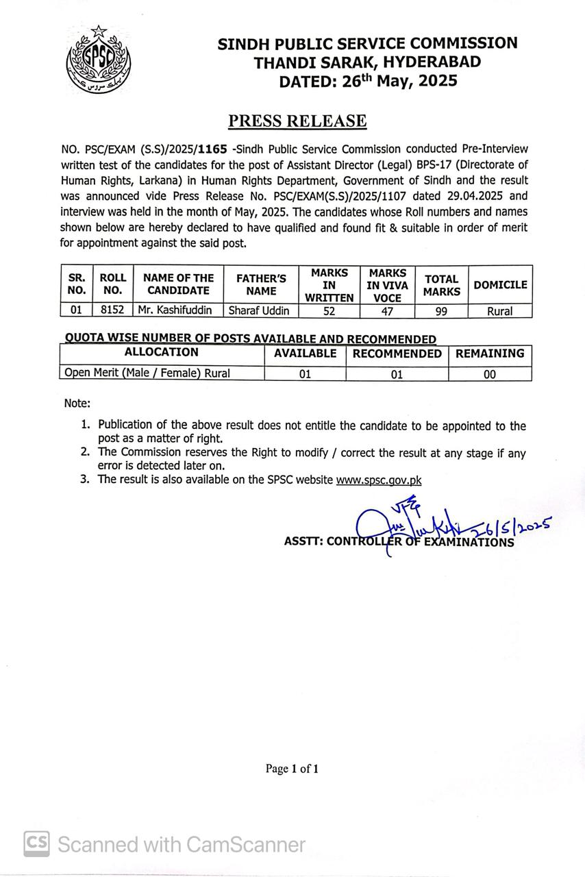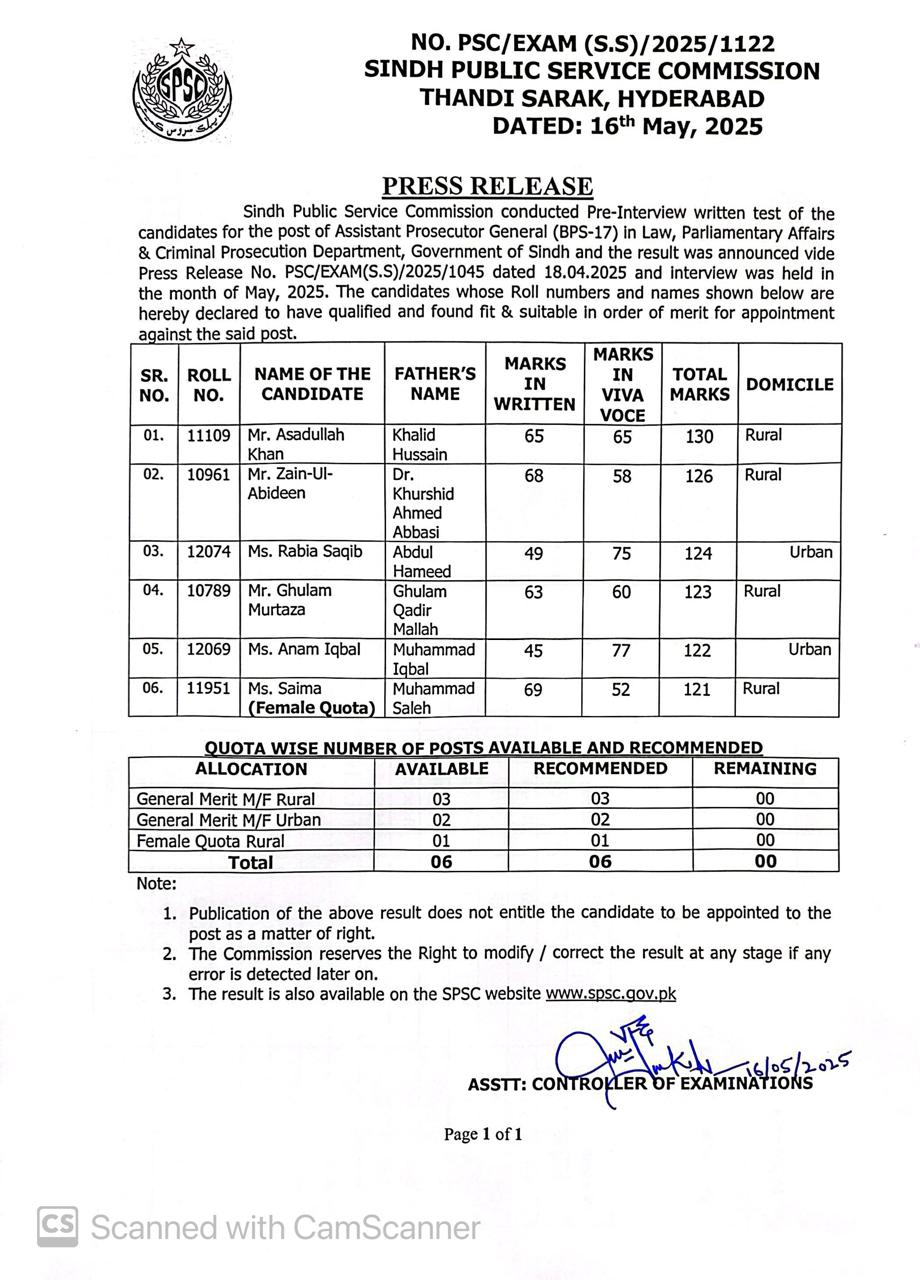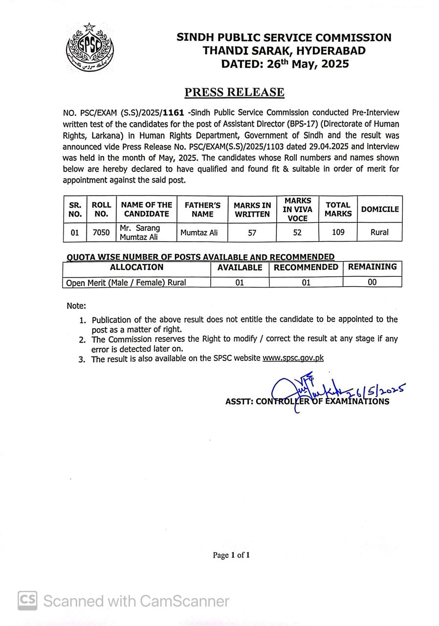 - Lecturer Chemistry (BPS-17) in College Education Department. (Click for Result)